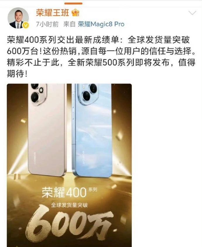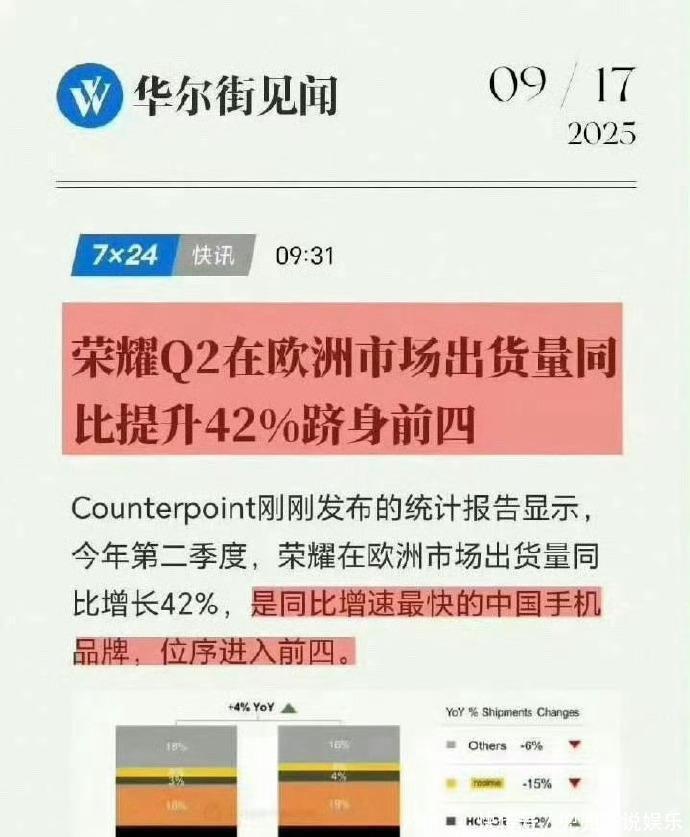 而今又有好消息传来。肖战代言的荣耀400发货量突破600万台销售额达180亿。第二季度荣耀在欧洲市场出货量同比增长42%是同比增速最快的中国手机品牌。不得不说自5月16日官宣半年时间取得这样天文数字般的闪亮成绩肖战的国际知名度绝对是一个撬动购买欲的支点难怪荣耀把感谢战哥的海报张贴在人来人往的公司大堂心里明白财神爷是谁。基于这么好的战绩肖战代言进阶自是理所当然。